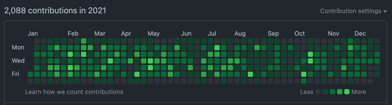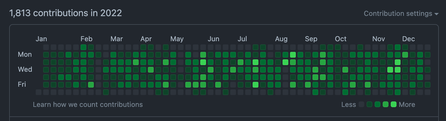 I joined in 2019 and it has been an intense four years. While the code itself is under wraps, my GitHub contribution graphs record an epic saga of startup life. Sure, contribution graphs carry their weight in controversy, serving as a double-edged sword in the tech world. Yet, I can't help but harbour a sense of pride when reflecting on the monumental volume of work I've poured into this venture. It's a testament, not just to the hours logged, but to the indomitable spirit and tireless dedication that defines the very essence of startup culture. This kind of persistence can only come from a tightly knit team. Hard work is contagious.